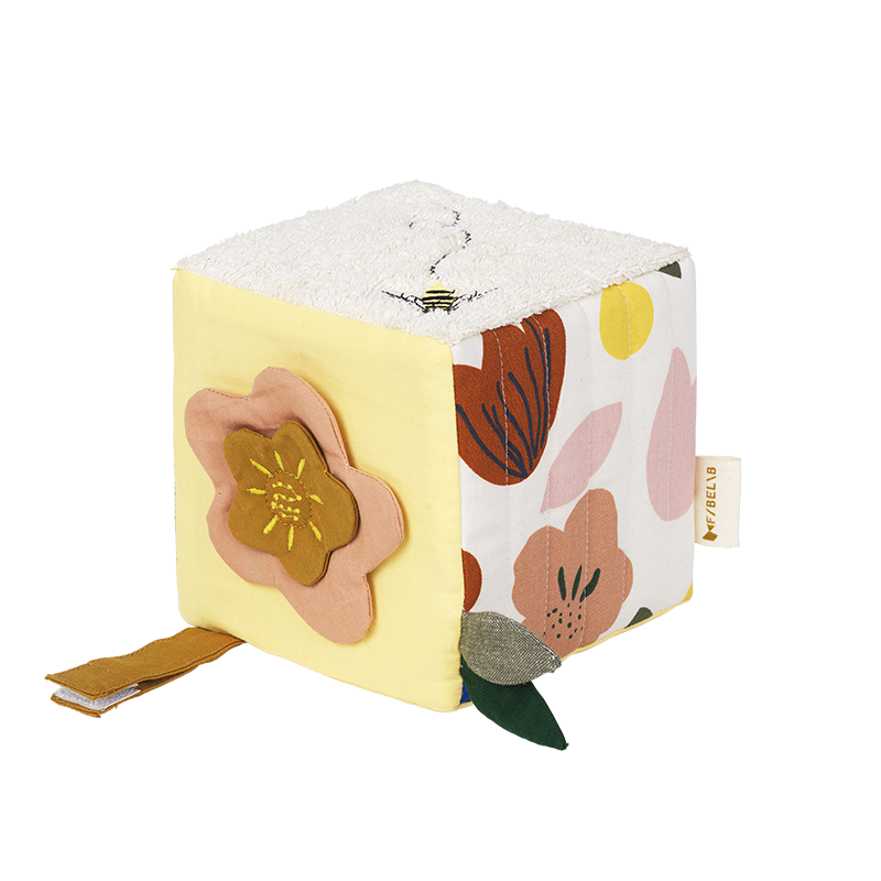 Pour les petits, voici un joli cube en tissu de chez Fabelab avec ses jolies couleurs printanières. Un jouet idéal à attacher sur la poussette, le lit ou le siège auto pour permettre à votre tout-petit d'explorer les différentes belles couleurs, textures et formes. En coton GOTS, ils sont tout doux et conviennent dès la naissance.