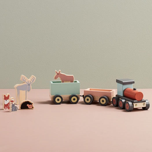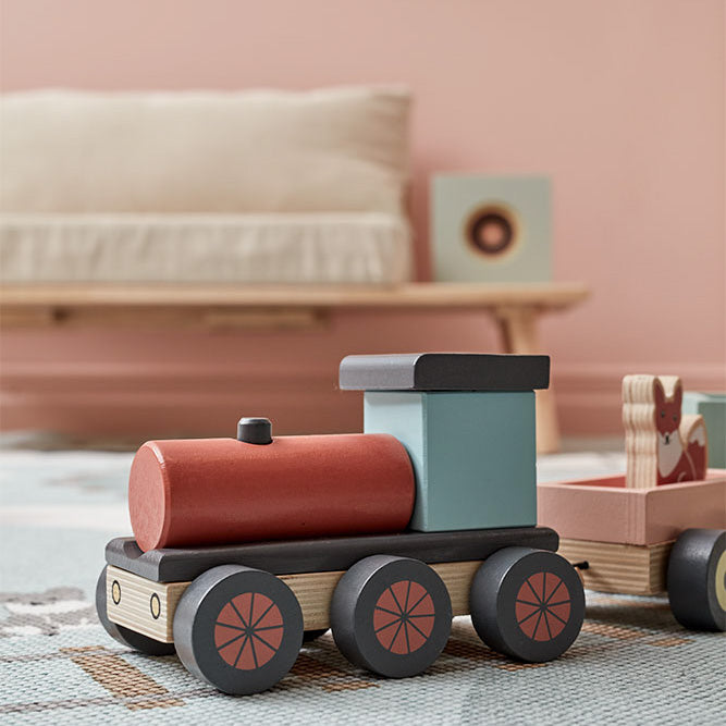 Le train de construction en bois Edvin de Kid’s Concept amusera votre enfant pendant de longues heures. Cinq animaux en bois Kid’s Concept peuvent s'installer dans le train avec sa locomotive et ses deux wagons. Votre enfant pourra l’emmener partout avec lui grâce à sa cordelette.