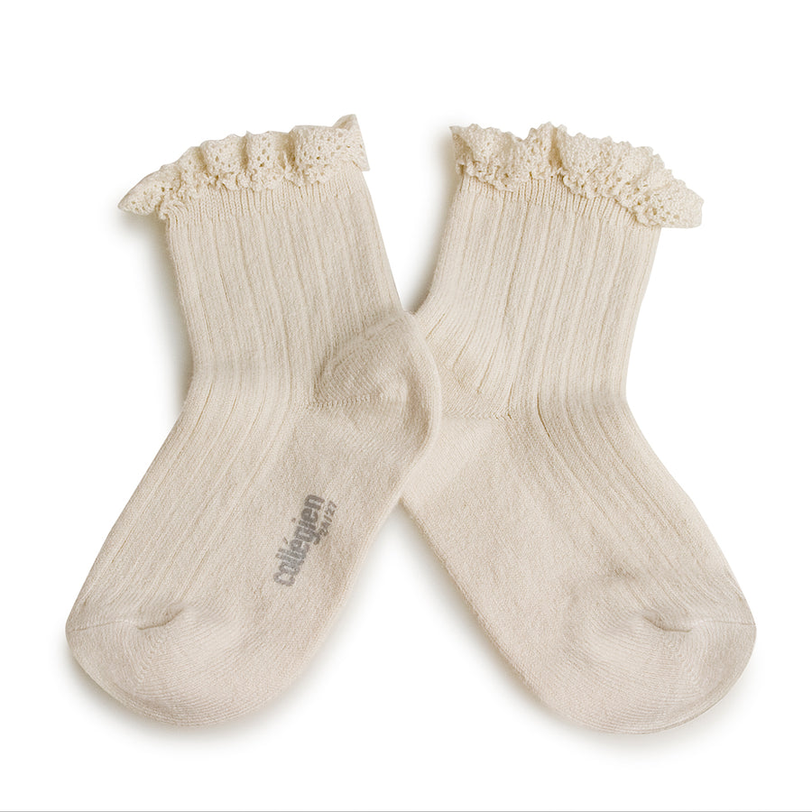 Le must des chaussettes sont là ! Collégien nous propose ici le modèle Lili, des chaussettes courtes pour fille à côtes avec dentelle, si féminines. On craque sur sa couleur parfaite avec toutes les tenues.