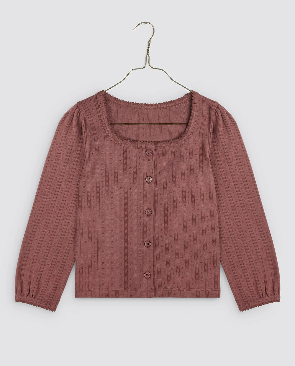 Little Cotton Clothes的这款马沙拉色纽扣挑窿T 恤是为您女儿的衣柜带来复古舒适气息的理想单品。挑窿纹理和扣眼赋予它精致、复古的魅力。